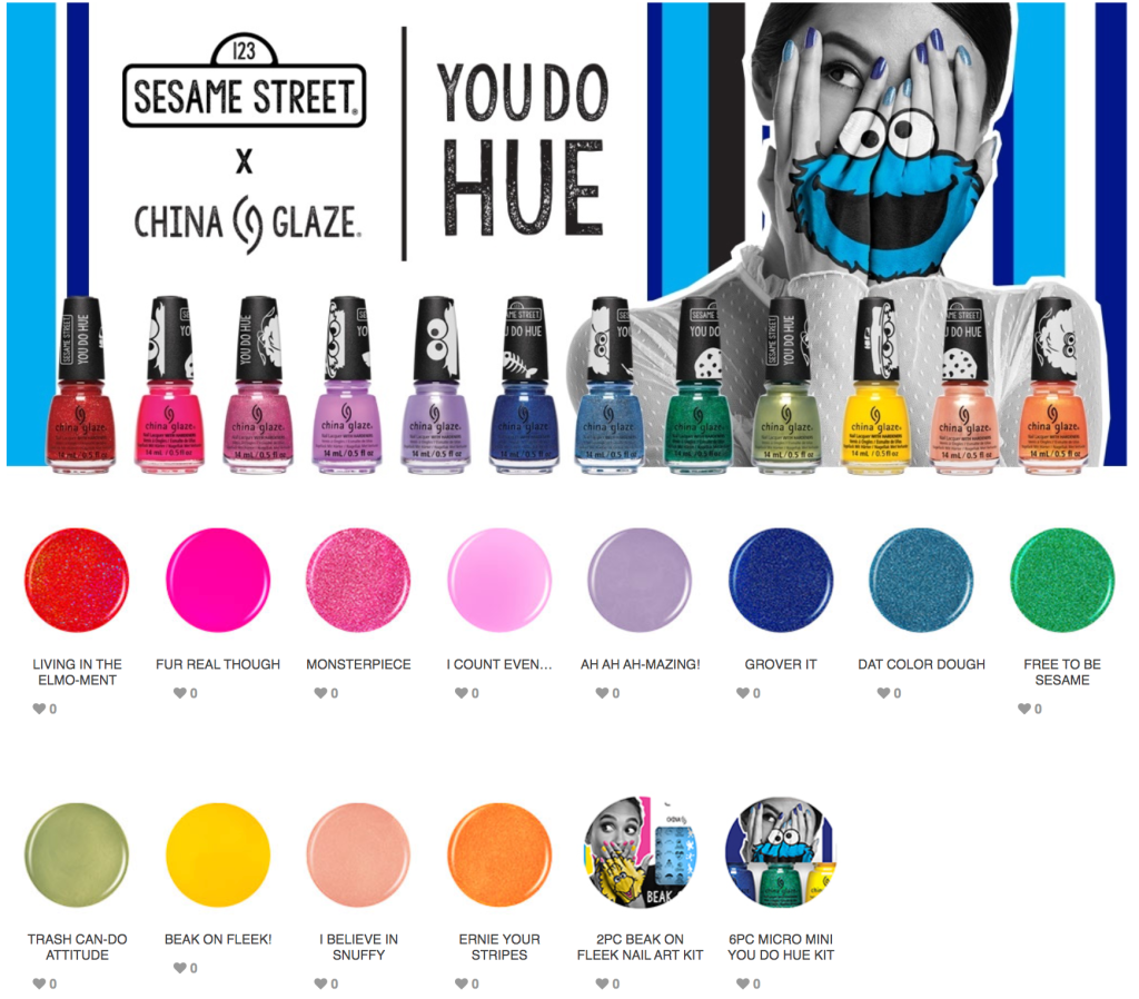 I took two distinct brand voices—Sesame Street’s and China Glaze’s—to create collection, shade names and campaign copy that adhered to each company’s goals.